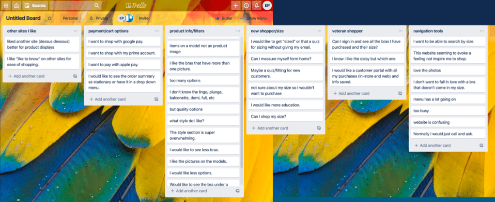 Current Customers – I asked them all to go on the website and buy their favorite bra. None of them could. The feedback I got was “I’d just ask you to send it to me” “do you know my size, I can’t remember?” “Wait, I see my bra but the shape of the cup looks different, is this right?”