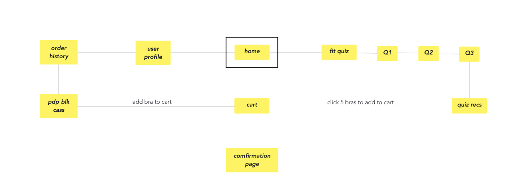 - Changing the home page to a simpler format, we can get Margot to the Fit Quiz quickly. She can get her recommendations and add them to her bag in a simple one click method. From here she is able to set up her profile in the cart. Margot will be able to try on her new bras at home without being charged. Whatever she keeps will be charged to her credit card after two weeks.